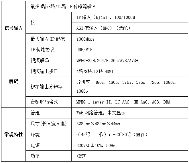 > 支持4路/8路/12路IP(TS)流、MPTS/SPTS輸入;