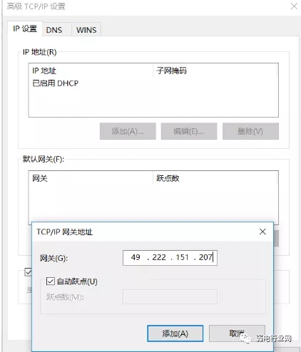 步驟:無線網(wǎng)絡(luò)連接屬性—Internet協(xié)議(TCP/IP)-屬性-高級,手動添加無線路由網(wǎng)關(guān),添加自己的外網(wǎng)網(wǎng)關(guān)即關(guān),躍點數(shù)為“1”,是最高優(yōu)先級。到了這一步,如果有線連接,無線連接同時存在的話,所有的數(shù)據(jù)都是經(jīng)由無線網(wǎng)卡處理的。