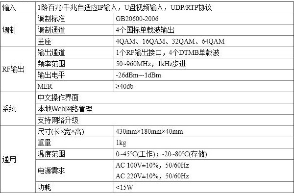 3.支持1個(gè)RF輸出接口,3或4個(gè)DTMB單載波輸出
