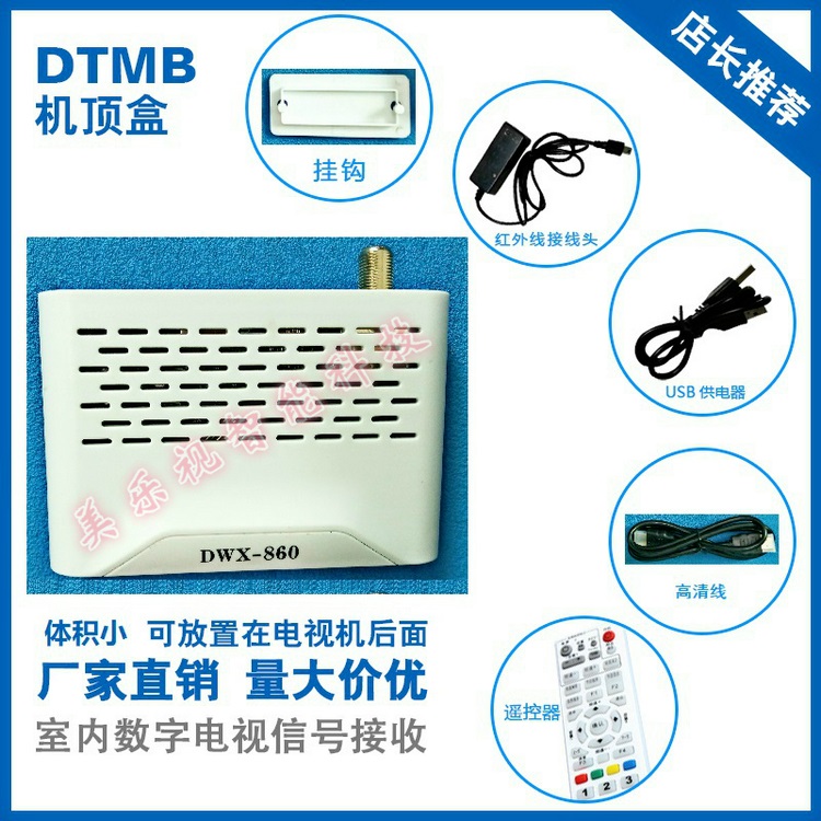 產(chǎn)品推薦說明:專門針對(duì)酒店客房老款電視機(jī)不能接收數(shù)字電視信號(hào)替代產(chǎn)品,全國首家研發(fā),生產(chǎn),銷售,可隱藏式DTMB迷你高清數(shù)字電視機(jī)頂盒,標(biāo)配學(xué)習(xí)型大號(hào)遙控器+HDMI高清數(shù)據(jù)線+USB供電源+數(shù)顯紅外接收延長器,一應(yīng)俱全。